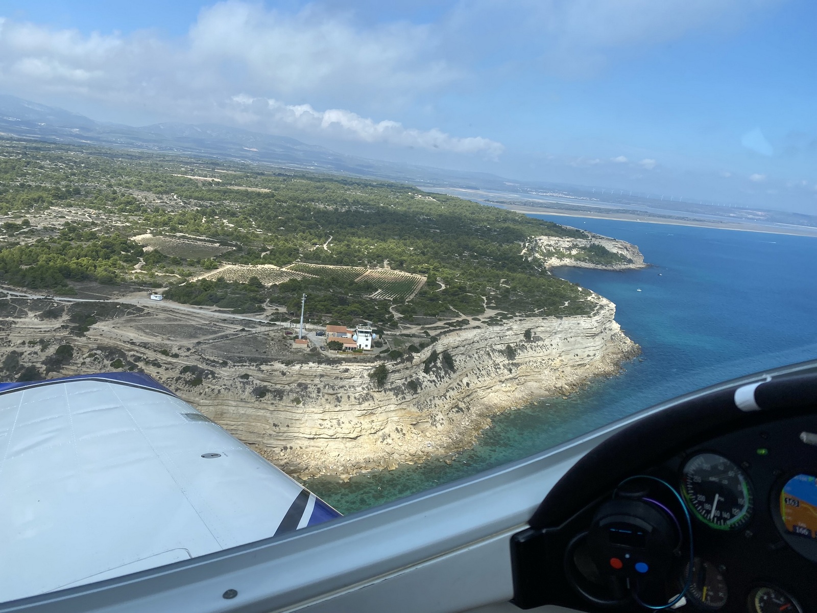 K azurovému pobřeží u španělské hranice na malé klubové letiště Torreilles – LF6651 s mezipřistáním v Montabaun – LFDB. Na obě letiště se mi podařilo dopsat emailem a dostat odpověď, že není problém. Let na Montabaun – snad 10 změn Squawk a 10 přeladění radia, takže jsem byl rád, že mám kopilota – víc času jsem strávil kecáním do rádia než držením kniplu. Letiště v Montabaun je uprostřed města, takže zajímavé přiblížení a final na krásnou asfaltovou dráhu. V letištní restauraci jsme potkali místního pilota, co se nám věnoval. Měli jsme tak možnost vidět jejich flotilu, zázemí a zas jednou pokecat – dobře mluvil anglicky – ve Francii dost raritka. Ale žádné čerpání, neměli jsme jejich speciální kartu. Nicméně paliva 5/8, takže žádný stres. Odlet do Torreilles a okouzlení azurovým pobřežím. Na radiu v Torreilles nikdo nebyl, takže průlet nízko nad letištěm, výběr kratší dráhy a přistání směrem k moři. Po dosednutí setkání s místním, ale anglickým pilotem. Troška nadávání na nízký okruh, ale když jsem začal omluvu s tím, že jsme tam prvně, a že letíme s tímhle prdítkem až z ČR, tak úsměv od ucha k uchu a vše zapomenuto. Čerpání MoGas, postavení stanu vedle letadla a pěšky k moři asi 2km. Prostě paráda. Ráno jsme potkali pilotku vrtulníku Robinson R66 turbine, která se chystala na odlet do Španělska a čekala na pasažéry. Tak prosba o radu, jak létat nad pobřežím. Dostalo se mi velmi stručné odpovědi, ale do 5 vět vše – co jsem opravdu použil. Nejdůležitější bylo, nedržet se podaného letového plánu, ale hned po vzletu požádat Information o převedení na pobřežní VFR Route. A to byla ta dobrá rada nad zlato.